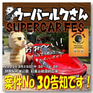 案件No.30は、3月15日(日)に駿府城公園紅葉山庭園前広場で開催の「Supercar Fes」です!