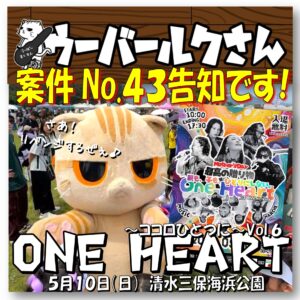 案件No.43は、5月10日(日)の母の日に清水区の清水三保海浜公園で開催されます「OneHeart~ココロひとつに~VOL.6」です!