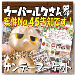 案件No.45は、2月8日(日)に葵区牛妻の安倍ごころで開催の「サンデーマーケット」です!