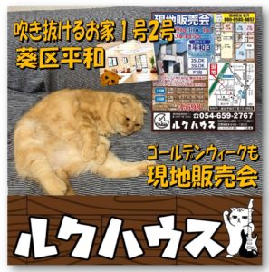 このゴールデンウィークもルクハウスは葵区平和で「吹き抜けるお家1号2号」の現地販売会を開催です!