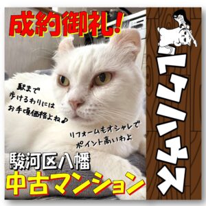 先日お申込み頂きました駿河区八幡の中古マンション、昨日無事ご成約となりました。