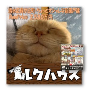 ルクハウス恒例の週末現地販売会、今週末は先週に続き、NewPriceな清水区緑が丘町・ちょっとオシャレな新築戸建全3棟です。