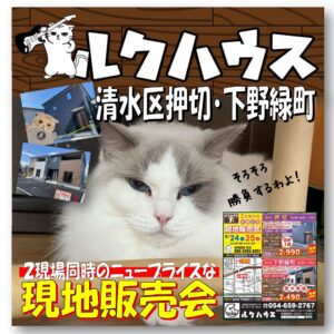 お盆明け最初の週末、清水区押切と下野緑町では「2現場同時のニュープライスな現地販売会」開催です!