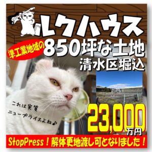■StopPress!解体更地渡し可となりました■ 清水区堀込「準工業地域の850坪な土地」