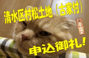 6月初旬にお預かりした清水区村松土地(古家付)、本日購入申込頂きました。