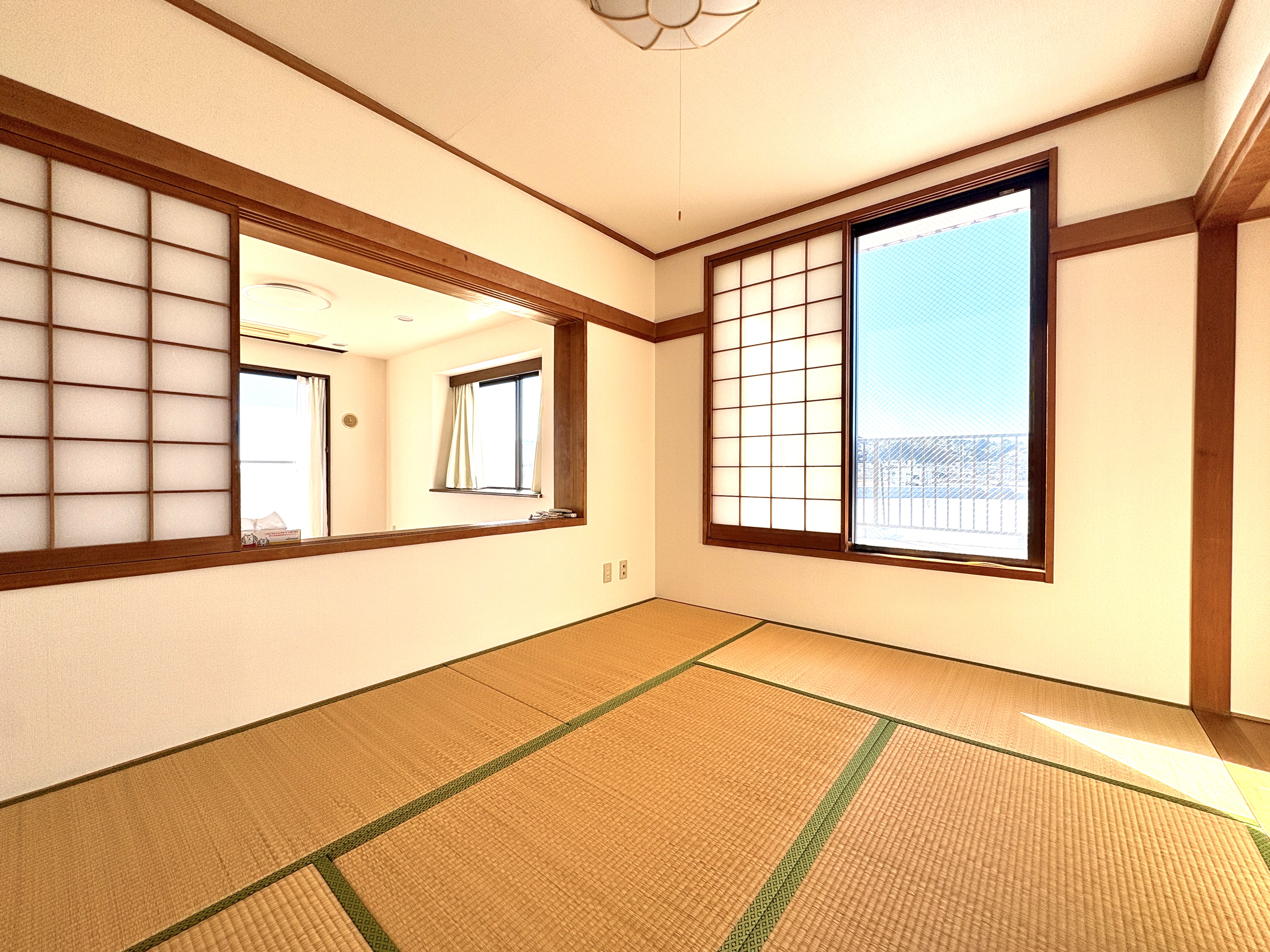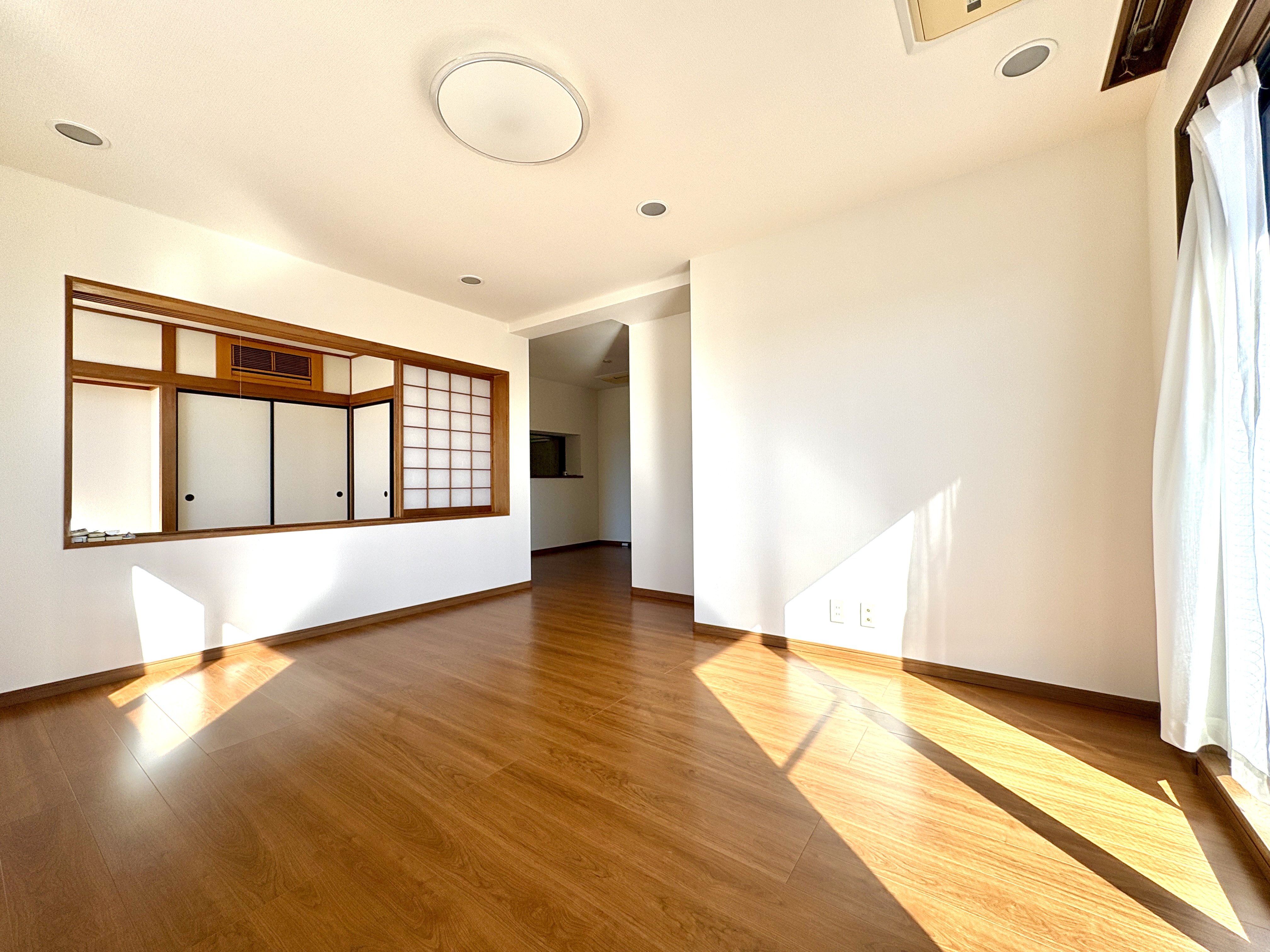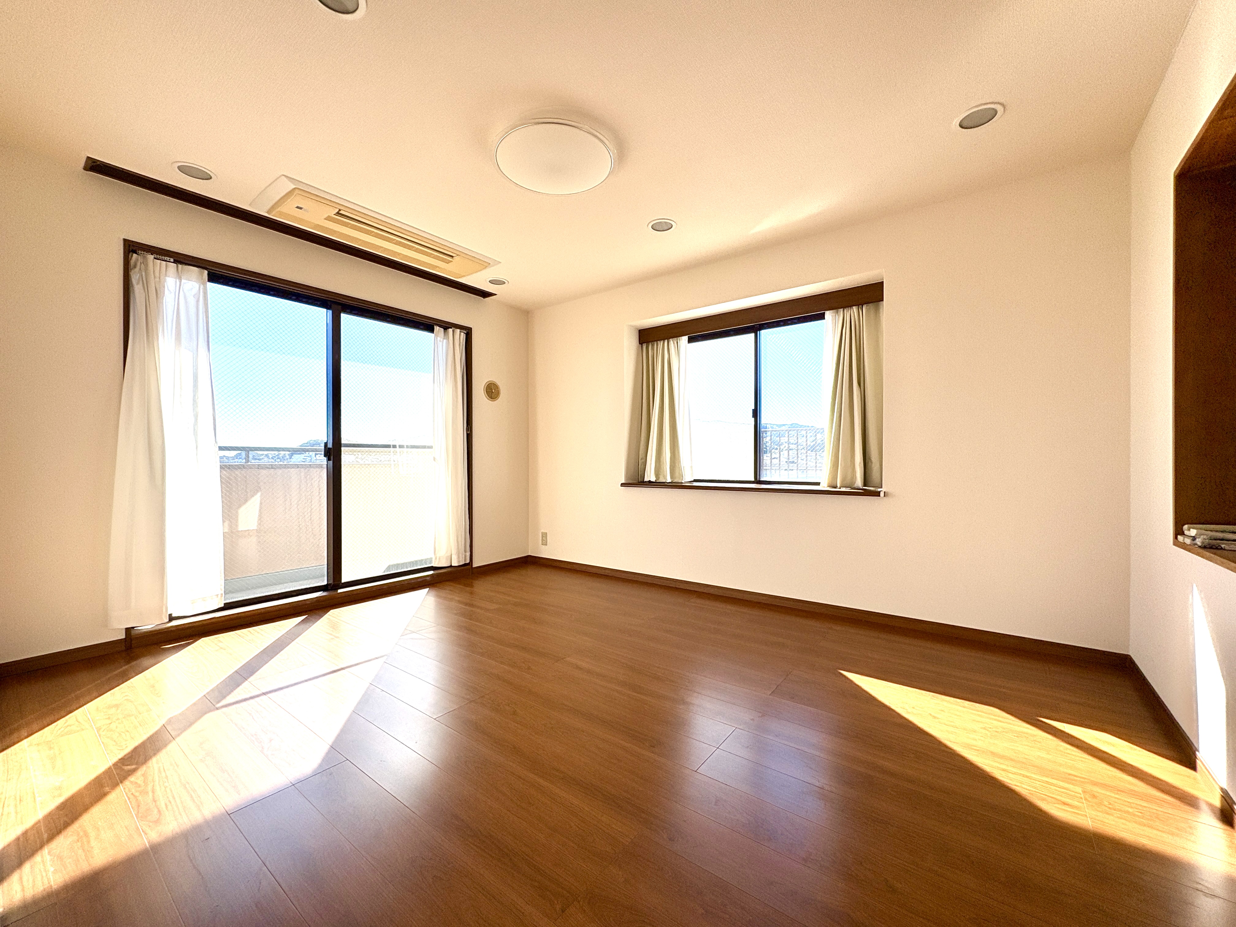 南東方向と南西方向に開いた窓からは遮るもののない太陽の光がサンサンと室内を照らします。